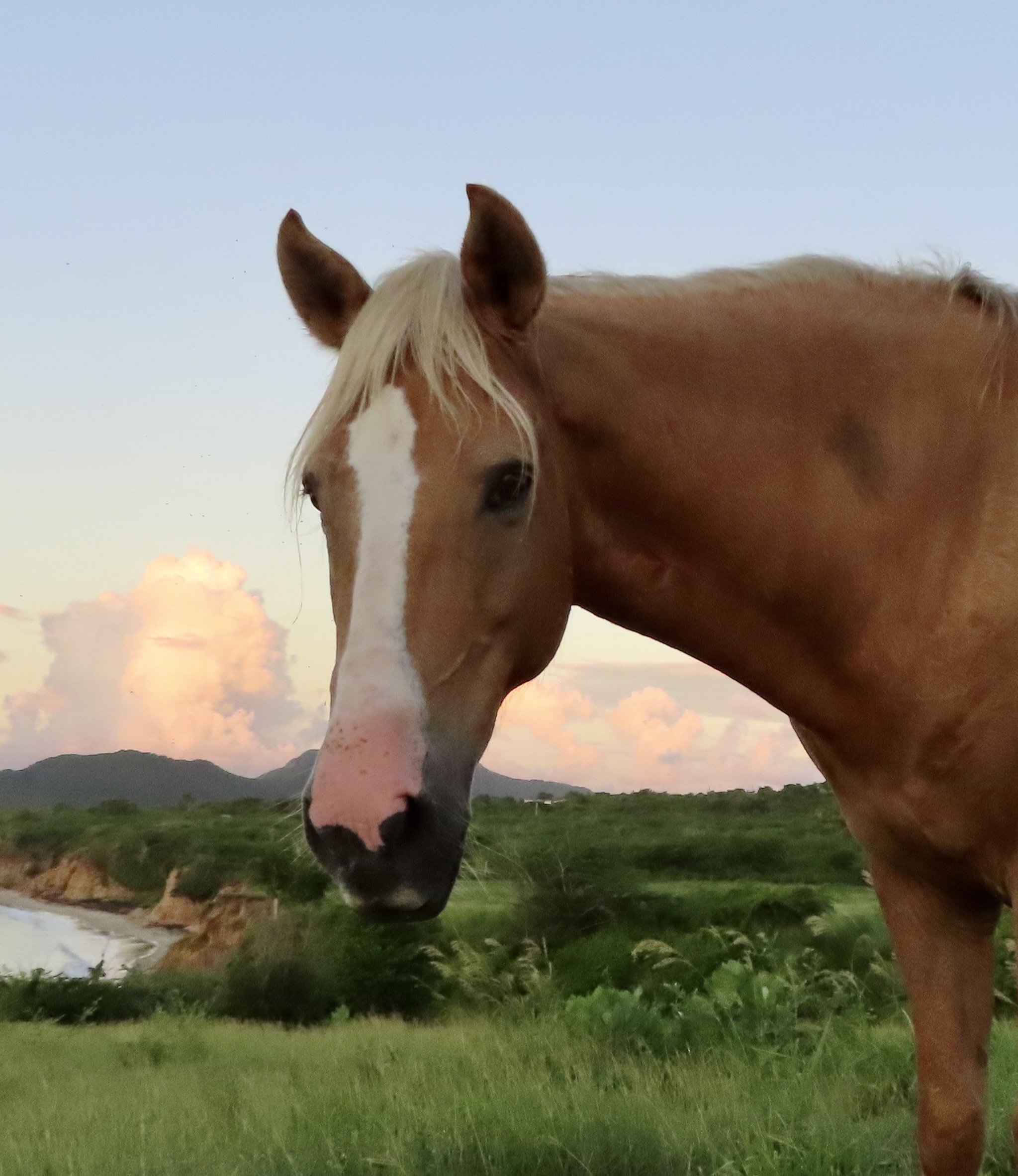 He’s the only guy that’s not a Paso Fino related horse on the farm; Quarter Horse/Tennessee Walking Horse. I found him on a cattle ranch on the main island of Puerto Rico and couldn’t resist this big, smooth-gaited, young man. We believe he was named for his big, fish eyes (Dorado is Spanish for Mahi Mahi).