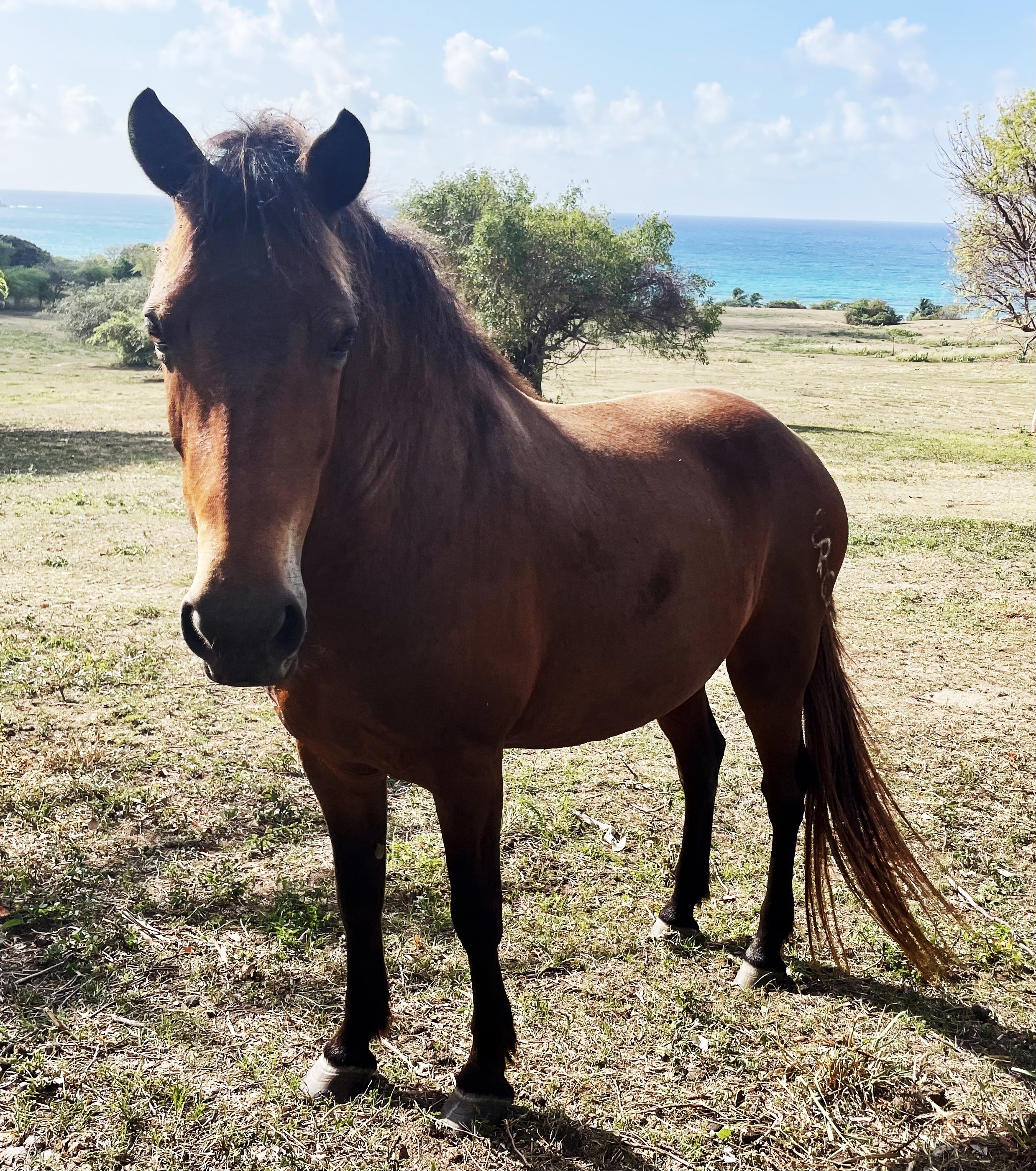 Once a street racer on the main island, he was hot to trot when we decided to take a chance on giving him a more laid back way of life. He loves it! He can even be a bit lazy sometimes if you let him, but fun when you ask just right.