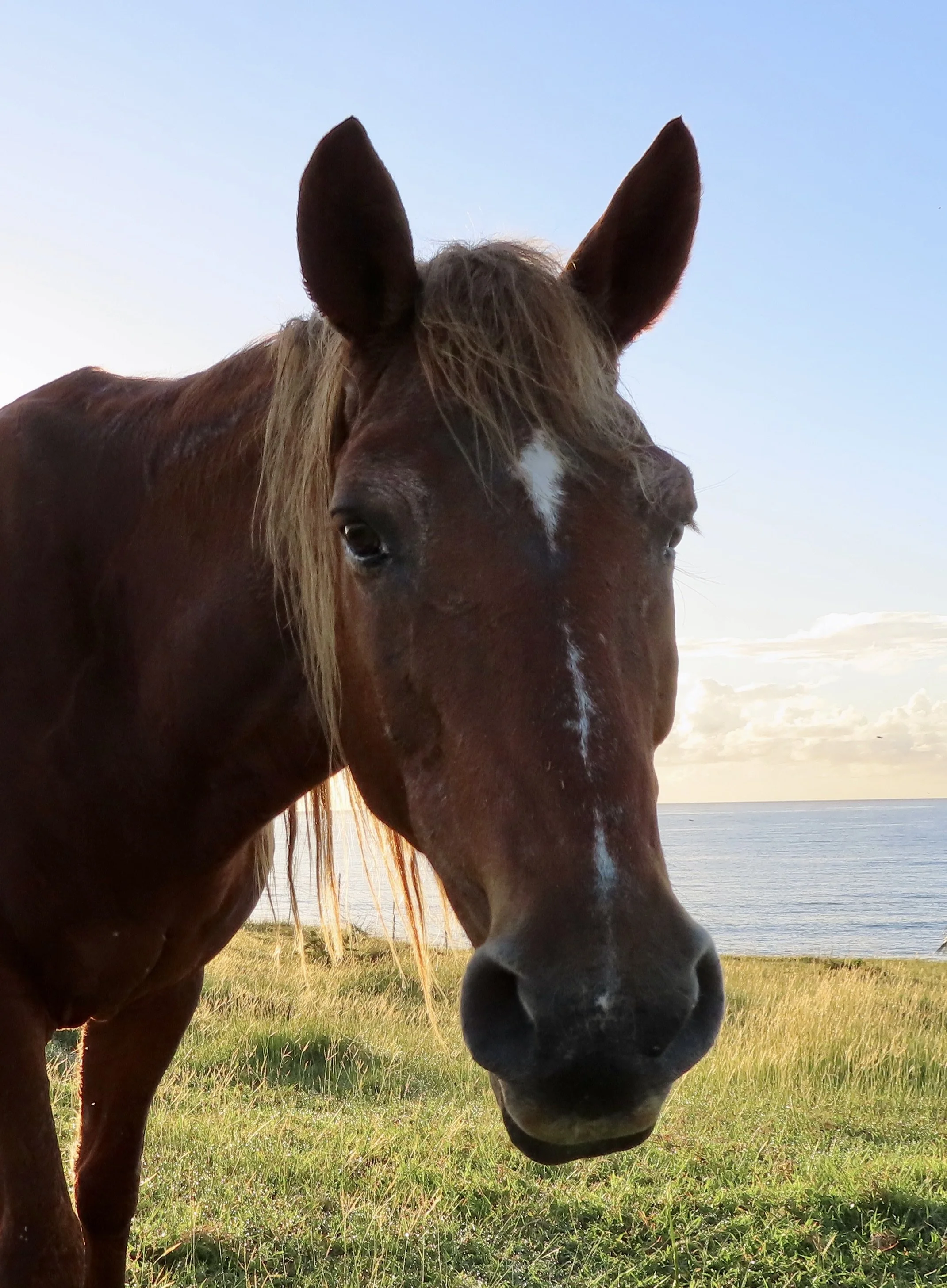 A handsome young fellah with an ego to match. With his bright red coat and tall rear white socks, I believe him to be Secretariat’s long lost Paso Fino grandson…or of Irish heritage. Attitude for miles!